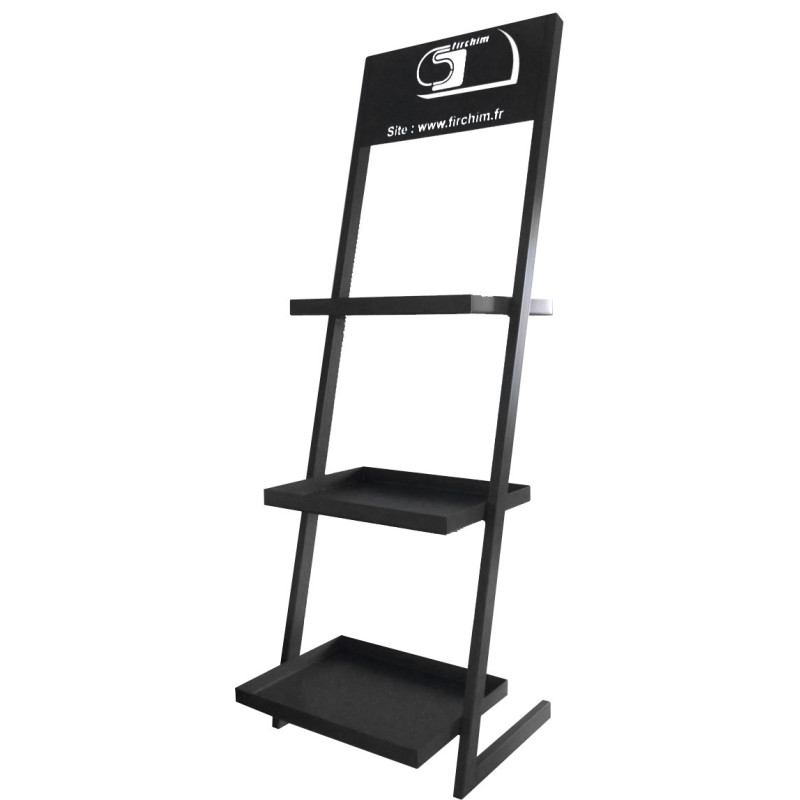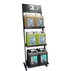 Présentoir produit avec bacs de rétention.