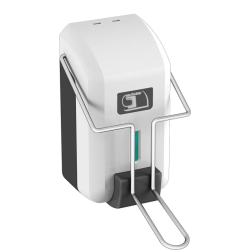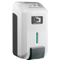 Distributeur remplissable à palette (actionnement avec l’avant-bras) pour savon et gel hydroalcoolique. Réservoir amovible facilitant le remplissage et le nettoyage de l'appareil. Contenance : 700 ml. Débit : 1 ml par pression. Niveau du savon visible. Fermeture à clé. Matériau : ABS. Couleur : blanc.