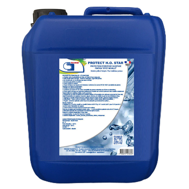 Apporte un caractère bouche pore qui évite les dépôts de pollution, l’incrustation de salissures, l’implantation des mousses, algues, lichens, les méfaits du gel lors des infiltrations d’eau. Facilite l’enlèvement des souillures grasses. Réhausse la coloration naturelle des matériaux. Protège carrelage, terre cuite, grès, schiste ardoisier, plâtre, pierres, ciment, enduit, tuiles…Appliquer en 2 couches mouillé sur mouillé à raison de 90-110 g / m2 / couche (soit 1L pour 5 m2 pour les 2 couches)selon l’absorption du support. Laisser sécher 24 heures avant de circuler sur la surface.