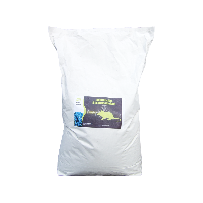 La matière active (Bromadiolone 0,005 %) est un anticoagulant qui agit en desséchant les cadavres sans les décomposer, ce qui évite certaines nuisances. Déposer jusqu'à 200 g d’appât pour les rats et 40 g pour les souris dans chaque poste. Respecter entre ces derniers un intervalle de 5 à 10 m selon l'importance de l'infestation. S'utilise à l'intérieur et autour des bâtiments.