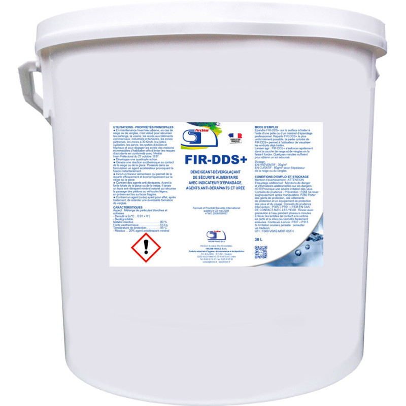 Température de protection : - 55°C. Composé de produits minéraux naturels ne présentant aucun danger pour l’environnement dans des conditions normales d’utilisation. Contient un agent accélérateur, provoquant la fusion de la glace et de la neige instantanément. L’élévation de température due à la réaction exothermique est deux fois plus importante que celle d’un déverglaçant classique de type chlorure de calcium en paillettes. Un indicateur visuel d’épandage permet de répartir le produit efficacement et économiquement. Contient un agent urée permettant après traitement de retarder une formation de verglas.